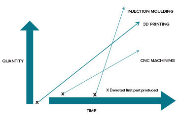 When utilising traditional manufacturing techniques, both low and high volume production are subject to similar high initial costs for tooling. In the case of low volume, lead times can be lengthy whiling tooling is produced, and part costs can be very high after amortizing tooling cost.